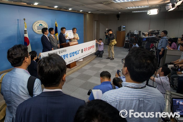 (서울=포커스뉴스) 경기지역 시장들이 4일 오후 서울 여의도 국회에서 행정자치부의 지방재정법 시행령 개정안 입법예고 철회를 촉구하는 기자회견을 하고 있다. 왼쪽부터 염태영 경기도 수원시장, 최성 경기도 고양시장, 이재명 경기도 성남시장, 채인석 경기도 화성시장.