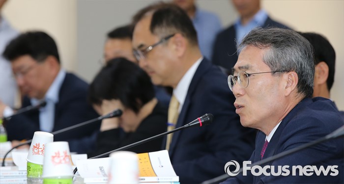 (세종=포커스뉴스) 4일 오후 세종시 정부세종청사 고용노동부 최저임금위원회 전원회의실에서 열린 제8차 전원회의에서 박준성 위원장이 회의를 주재하고 있다.