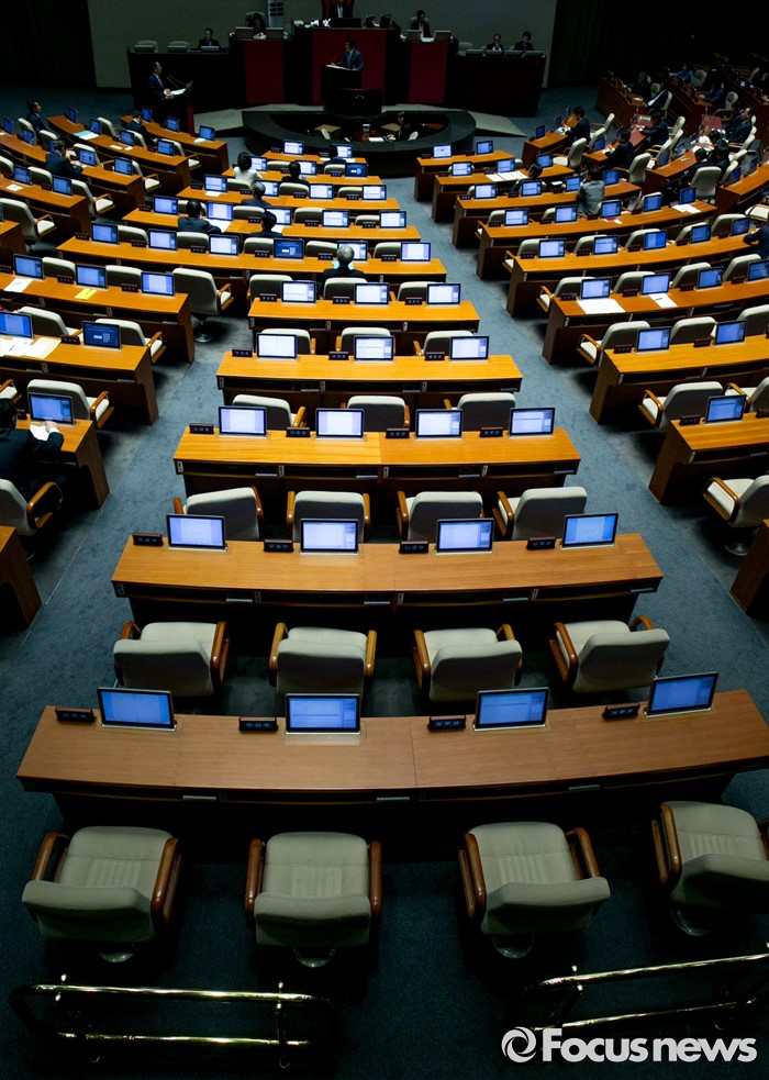 (서울=포커스뉴스) 4일 오후 서울 여의도 국회에서 열린 343회 국회(임시회) 6차 본회의, 경제에 관한 대정부 질문에 불참한 일부 의원들의 빈 자리가 보이고 있다.
