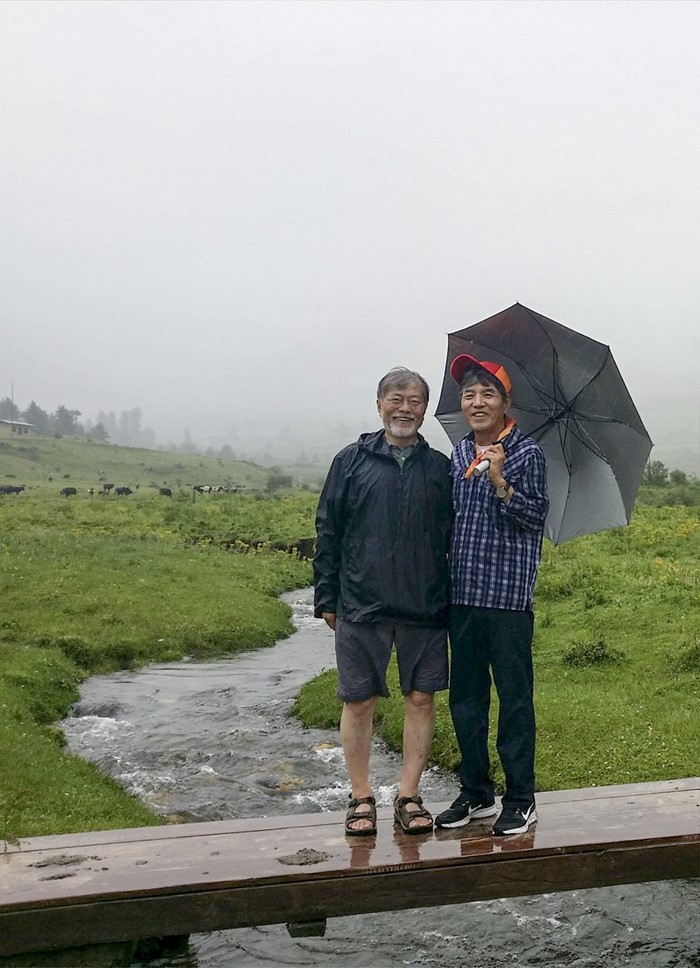 (서울=포커스뉴스) 문재인 더불어민주당 전 대표의 부탄 방문에 동행한 박범신 작가가 SNS에 "작지만 국민행복지수에서 선진국인 부탄에서 나는 적게 먹고 많이 걸으려 애썼고, 그는 더불어 행복해지는 길에 대한 모색에 몰두했다"라는 글과 문 전 대표와 함께 찍은 사진을 4일 공개했다. <사진제공=박범신 작가 트위터>