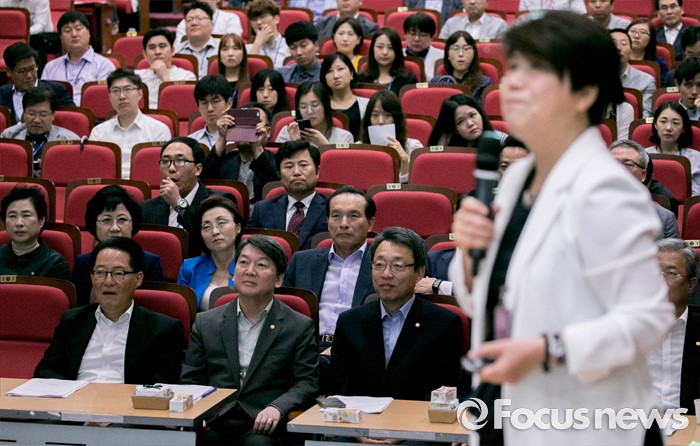 | △ 성희롱 예방교육 듣는 국민의당 의원 및 당직자들 |