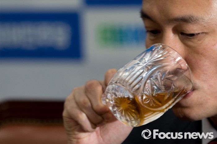 | △ 물마시는 우상호 원내대표 |