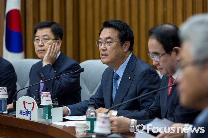 (서울=포커스뉴스) 정진석 새누리당 원내대표가 5일 오전 서울 여의도 국회에서 열린 원내대책회의에 참석해 모두발언 하고 있다.