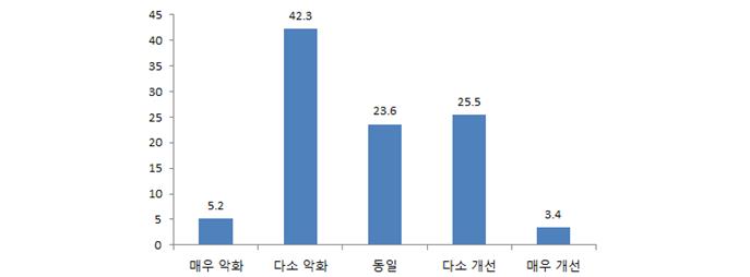 (서울=포커스뉴스) 1년 전에 비해 경영상황이 '악화됐다'는 중소기업이 47.5%에 달했다. 반면, '개선됐다'는 곳은 28.9%에 그쳤다.