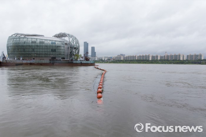 (서울=포커스뉴스) 장마전선이 북상하면서 전국 곳곳에 호우특보가 발표 중인 5일 오전 서울 서초구 반포한강시민공원이 물에 잠기고 있다.