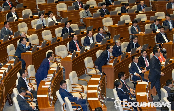 (서울=포커스뉴스) 5일 오전 서울 여의도 국회에서 열린 343회 국회(임시회) 7차 본회의, 정치·외교·통일·안보·교육·사회·문화에 관한 질문에 참석한 김동철 국민의당 의원의 발언에 일부 새누리당 의원들이 항의하고 있다.