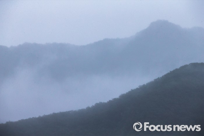 (연천=포커스뉴스) 태풍 네파탁이 북상하고 전국 곳곳에 호우주의보와 경보가 내린 5일 오전 경기도 연천군 상리 인근의 산 허리에 비를 동반한 안개가 짙게 깔려 있다.