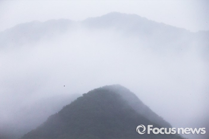(연천=포커스뉴스) 태풍 네파탁이 북상하고 전국 곳곳에 호우주의보와 경보가 내린 5일 오전 경기도 연천군 상리 인근의 산 허리에 비를 동반한 안개가 짙게 깔려 있다.