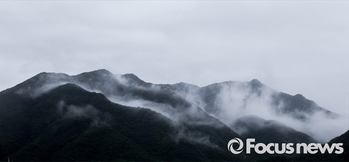 (연천=포커스뉴스) 태풍 네파탁이 북상하고 전국 곳곳에 호우주의보와 경보가 내린 5일 오전 경기도 연천군 상리 인근의 산 허리에 비를 동반한 안개가 짙게 깔려 있다.