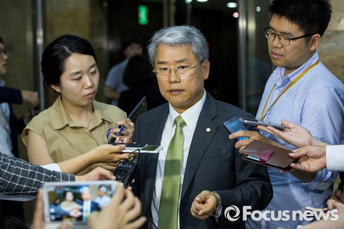 (서울=포커스뉴스) 김동철 국민의당 의원이 5일 오전 서울 여의도 국회에서 열린 '343회 국회(임시회) 7차 본회의 정치, 외교, 통일, 안보, 교육, 사회, 문화에 관한 질문에 참석한 이장우 새누리당 의원과 언쟁을 벌인 뒤 취재진 질문에 답하고 있다.