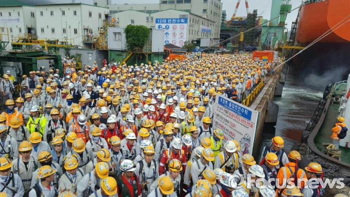 (서울=포커스뉴스) 경남 거제 삼성중공업 노동자협의회가 전 사원 파업투쟁을 선언했다.