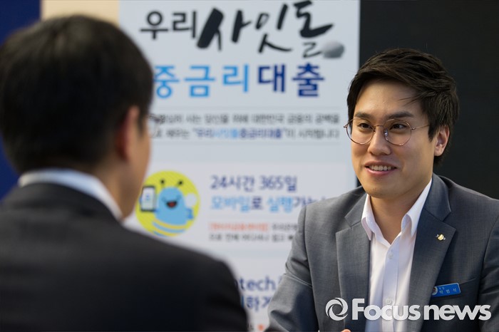 (서울=포커스뉴스) 5일 오후 서울 중구 우리은행 본점에서 은행 고객이 사잇돌 중금리 대출 상담을 받고 있다.
