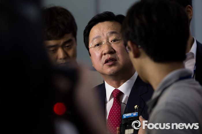 (서울=포커스뉴스) 이장우 새누리당 의원이 5일 오후 서울 여의도 국회에서 김동철 국민의당 의원과 본회의장에서의 언쟁을 벌인 것과 관련한 입장발표를 마친 뒤 취재진 질문에 답하고 있다.