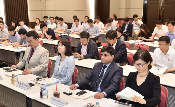 한편 이날 설명회 후에는 제조업 투자스쿨이 열렸다. 현지 전문가가 공장 시·준공 방법부터 인허가 취득 노하우 등을 교육했다.코트라 본사에서 5일 열린 '인도 투자진출 설명회 및 제조업 투자스쿨'에서 참가자들이 강연을 듣고 있다. <사진제공=코트라>