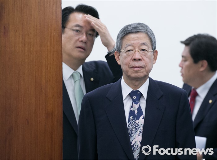 (서울=포커스뉴스) 6일 오전 서울 여의도 국회에서 열린 새누리당 혁신비상대책위원회의에 김희옥(가운데) 위원장과 정진석 원내대표가 참석하고 있다.