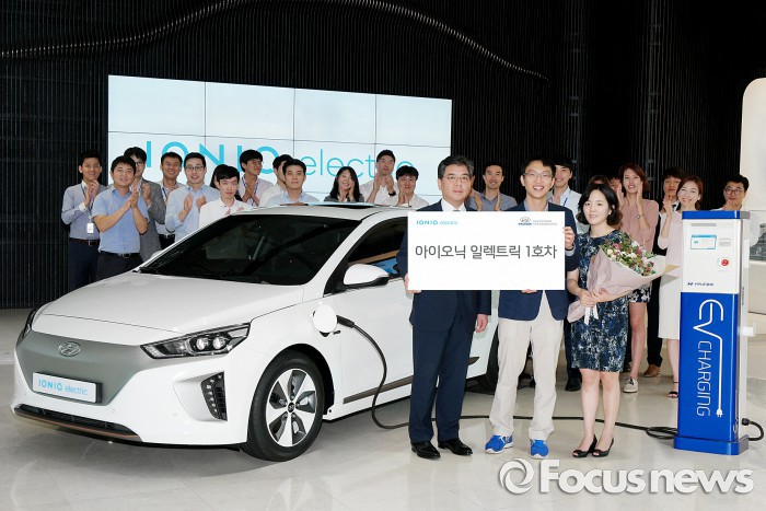 (서울=포커스뉴스) 현대자동차의 최초 양산형 전기차 아이오닉 일렉트릭 1호차가 전달됐다.