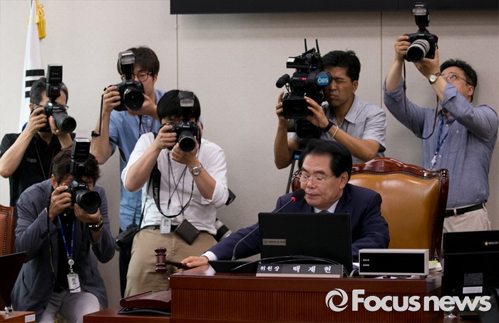 (서울=포커스뉴스) 6일 오전 서울 여의도 국회에서 열린 윤리특별위원회 전체회의에 참석한 백재현 위원장이 안건 의결을 하고 있다.