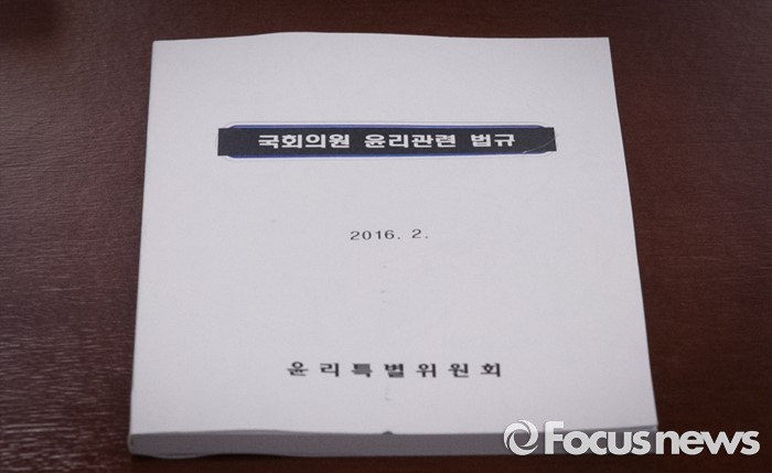 (서울=포커스뉴스) 6일 오전 서울 여의도 국회에서 열린 윤리특별위원회 전체회의에 국회의원 윤리관련 법규 책자가 놓여 있다.