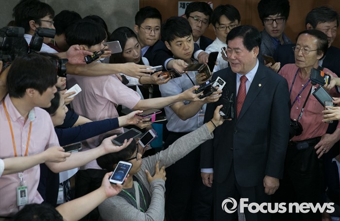 (서울=포커스뉴스) 최경환 새누리당 의원이 6일 오전 서울 여의도 국회 정론관에서 8·9 전당대회 불출마 기자회견을 마친 뒤 취재진 질문에 답하고 있다.