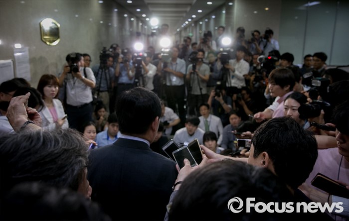 (서울=포커스뉴스) 최경환 새누리당 의원이 6일 오전 서울 여의도 국회 정론관에서 8·9 전당대회 불출마 기자회견을 마친 뒤 취재진 질문에 답하고 있다.