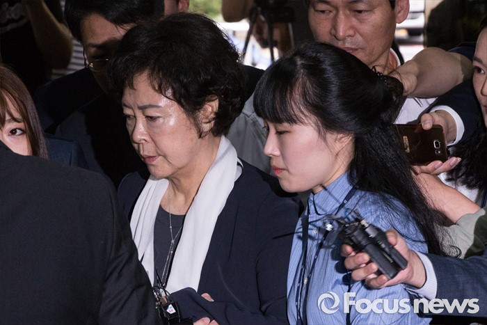 (서울=포커스뉴스) 롯데면세점 입점 로비 혐의를 받고 있는 신영자 롯데장학재단 이사장이 영장실질심사를 받기 위해 6일 오전 서울 서초구 서울중앙지법으로 들어서고 있다.