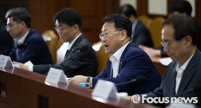 (서울=포커스뉴스) 유일호(오른쪽 두번째) 경제부총리 겸 기획재정부 장관이 6일 오전 서울 종로구 정부서울청사에서 열린 제19차 재정전략협의회에 자리해 모두발언 후 입술에 침을 바르고 있다.