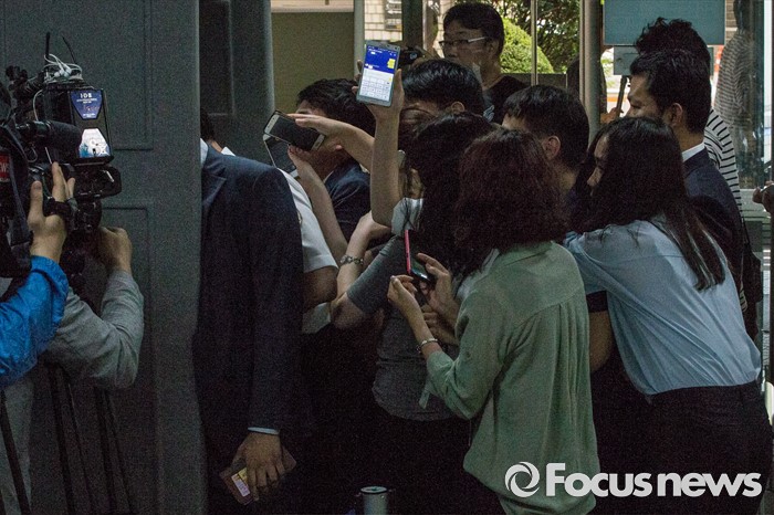 (서울=포커스뉴스) 6일 오전 서울 서초구 서울중앙지법에서 취재진들이 롯데면세점 입점 로비 혐의를 받고 있는 신영자 롯데장학재단 이사장 취재를 위해 법원 입구에 몰려있다.