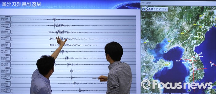 (대전=포커스뉴스) 6일 오전 대전 유성구 한국지질자원연구원 지진연구센터에서 직원들이 지진상황을 모니터 하고 있다. 지난 5일 오후 8시 33분께 울산 동구 동쪽 52㎞ 해상에서 규모 5.0의 지진이 발생했다.