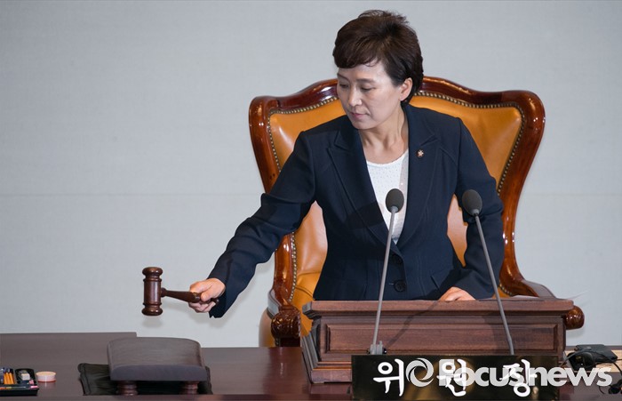 (서울=포커스뉴스) 6일 오전 서울 여의도 국회에서 열린 예산결산특별위원회 전체회의에 참석한 김현미 위원장이 안건 의결을 하고 있다.