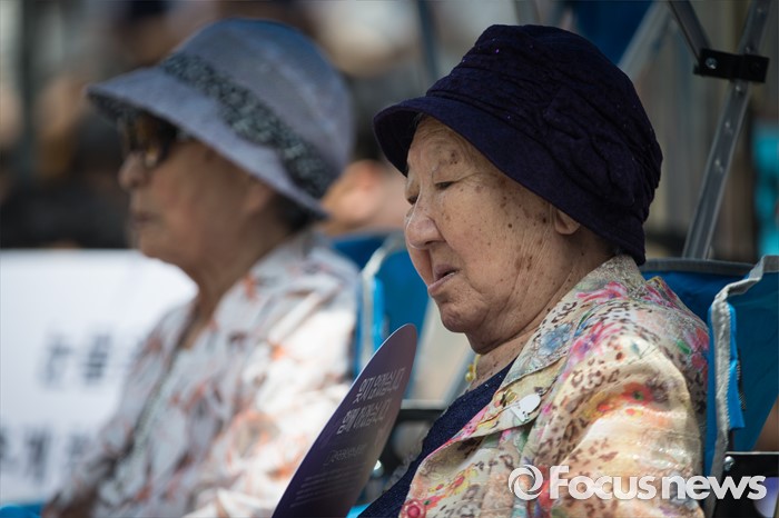 (서울=포커스뉴스) 6일 오후 서울 종로구 주한일본대사관 앞에서 열린 일본군 '위안부' 문제 해결을 위한 제1238차 정기 수요집회에서 길원옥 할머니가 자리를 지키고 있다.
