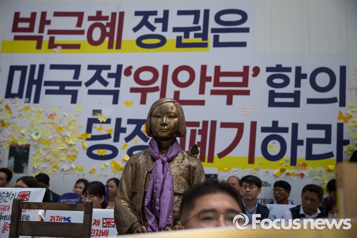 (서울=포커스뉴스) 6일 오후 서울 종로구 주한일본대사관 앞에서 일본군 '위안부' 문제 해결을 위한 제1238차 정기 수요집회가 열리고 있다.