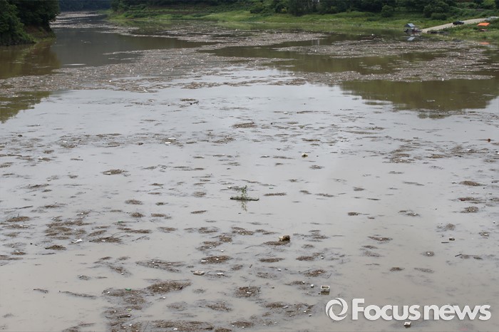 (옥천=포커스뉴스) 며칠간 이어진 중부지역 집중호우로 6일 오후 충북 옥천군 군복면 대청호 상류 일대에 쓰레기로 뒤덮혀 있다.
