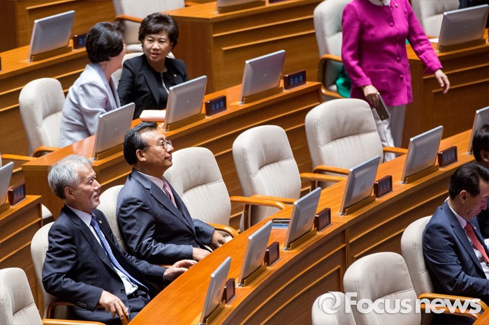(서울=포커스뉴스) 이정현(왼쪽 두 번째) 새누리당 의원이 6일 오후 서울 여의도 국회에서 열린 '제343회 국회(임시회) 제8차 본회의'에 참석 하고 있다.