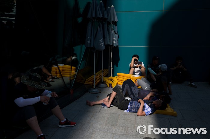 (서울=포커스뉴스) 6일 오후 서울 중구 서울시청광장에서 열린 '건설노동자 총력투쟁 결의대회'에 참석한 조합원들이 인근에서 휴식을 취하고 있다.