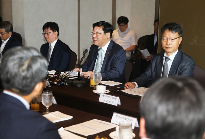 (서울=포커스뉴스) 주형환 산업통상자원부 장관이 6일 서울 팔래스호텔 다이너스티홀에서 채희봉산업부 에너지자원실장, 정창길 중부발전 사장, 조인국 서부발전 사장, 김용진 동서발전 사장, 허 엽 남동발전 사장, 윤종근 남부발전 사장과 산업부 관계자가 참석한 가운데 열린 석탄화력발전 대책회의를 주재하고 있다. <사진제공=산업통상자원부>