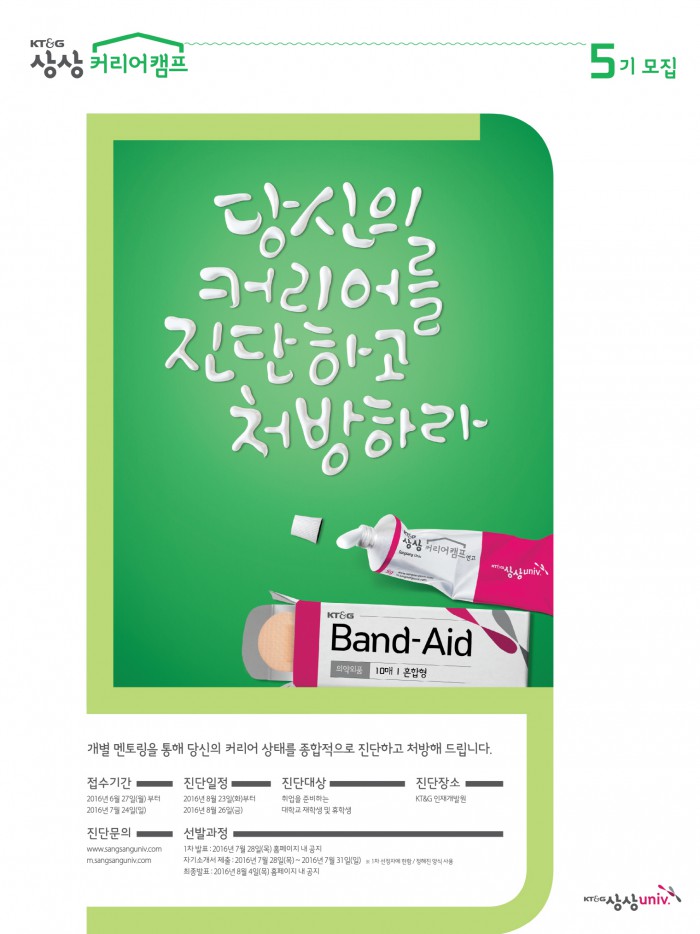 (서울=포커스뉴스) KT&G가 대학생들에게 맞춤형 취업 컨설팅을 제공하는 '상상 커리어캠프' 5기 참가자를 24일까지 모집한다고 7일 밝혔다.