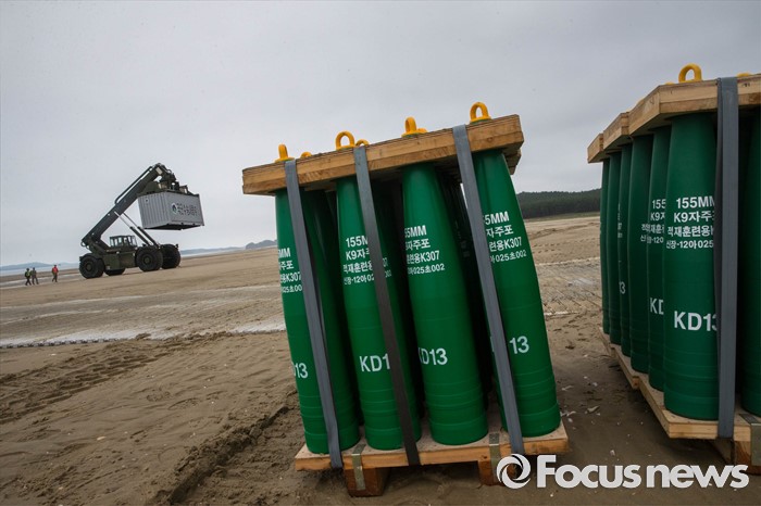 | △ 자주포 포탄 뒤로 옮겨지는 군수품 |