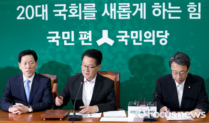 (서울=포커스뉴스) 7일 오전 서울 여의도 국회에서 열린 국민의당 첫 비상대책위원회의에 참석한 박지원(가운데) 비대위원장이 개의 선언을 하고 있다.