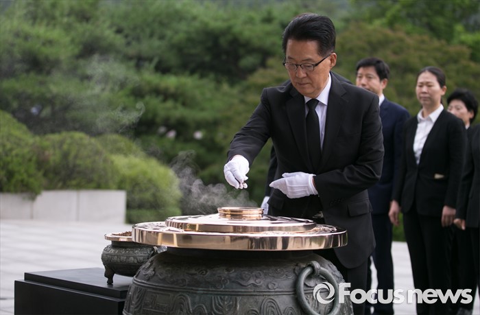(서울=포커스뉴스) 박지원 국민의당 비상대책위원장과 비대위원 등이 7일 오전 동작구 국립서울현충원을 방문해 현충탑 참배를 하고 있다.