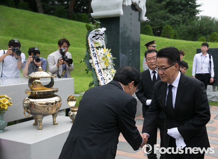 | △ 김대중 전 대통령 묘소 참배 마친 박지원 |