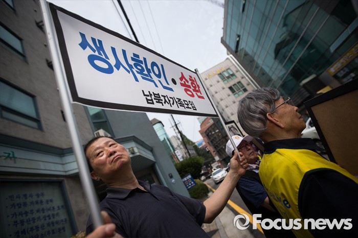 (서울=포커스뉴스) 납북자가족모임과 국군포로가족회 회원들이 7일 오후 서울 서초구 민주사회를위한변호사모임 사무실 앞에서 '납북자들에 대한 인신보호법상 구제 청구' 기자회견을 하고 있다.