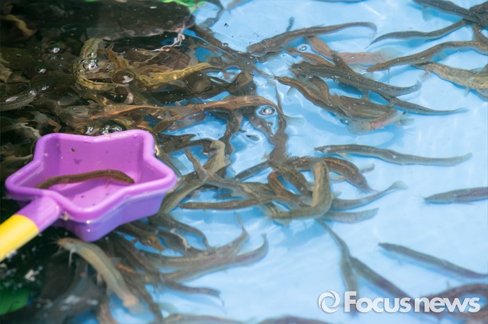(서울=포커스뉴스) 7일 오후 서울 종로구 청계천 광장에서 열린 '2016 도시 농촌 교류의 날 및 농촌여름휴가 캠페인'에 미꾸라지 잡기 체험부스가 마련되어 있다.