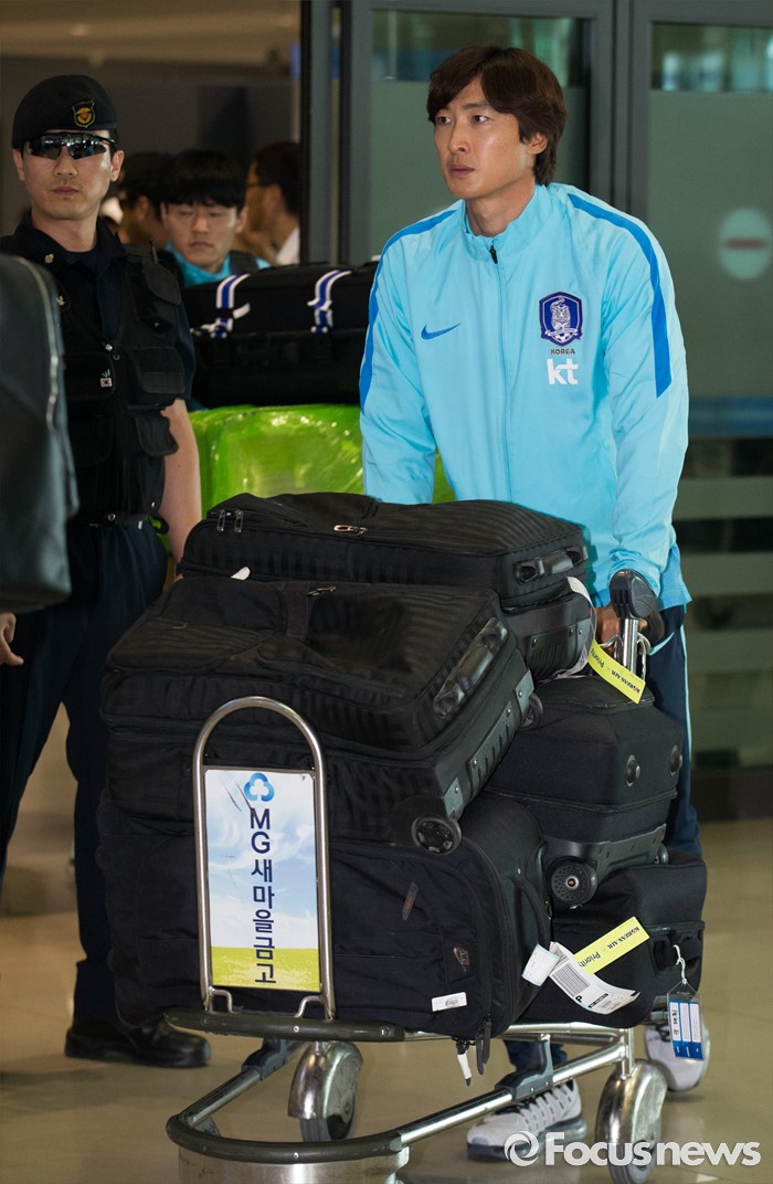 곽태휘의 국내 복귀는 3년 반만이다. 곽태휘는 K리그 통산 163경기에 출장해 17골, 6도움을 기록중이다. 중앙 수비수임에도 적지 않은 골을 기록하며 골 넣는 수비수로도 잘 알려져 있다. 대표팀 소속으로도 2014년 브라질월드컵에 참가했고 울리 슈틸리케 감독이 이끄는 현 대표팀에서도 주축 수비수로 활약중이다.(인천공항=포커스뉴스) 유럽 원정에 나서 두 차례 평가전을 치러 1승 1패(스페인 1-6패, 체코 2-1승)를 거둔 대한민국 축구 국가대표팀 곽태휘가 7일 오후 인천국제공항을 통해 귀국하고 있다. 2016.06.07 오장환 기자