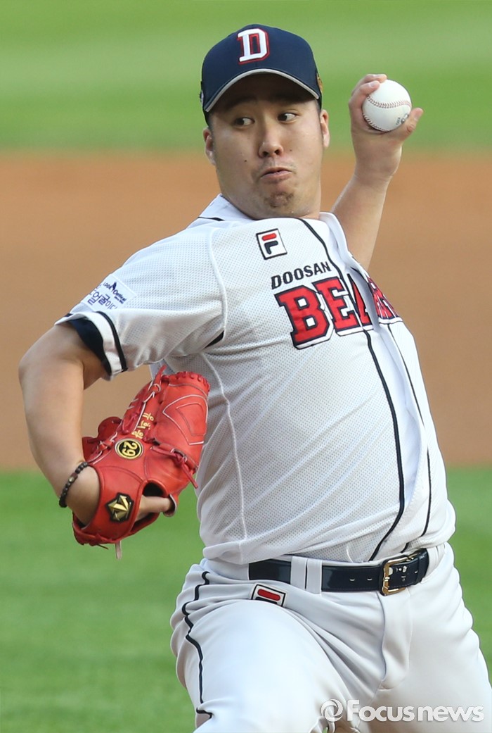 (서울=포커스뉴스) 6일 서울 잠실구장에서 열린 2016 프로야구 넥센-두산 경기에서 1회초 두산 선발투수 유희관이 투구하고 있다.