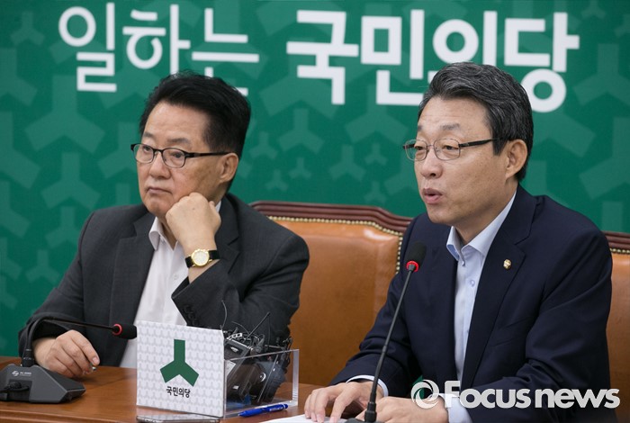 (서울=포커스뉴스) 8일 오전 서울 여의도 국회에서 열린 국민의당 원내대책회의에 참석한 김성식 정책위의장이 모두발언을 하고 있다. 왼쪽은 박지원 비대위원장.