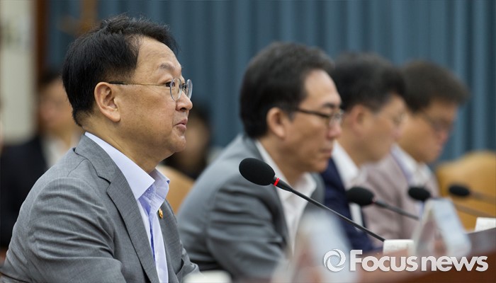 (서울=포커스뉴스) 유일호(왼쪽) 경제부총리 겸 기획재정부 장관이 8일 오전 서울 종로구 정부서울청사에서 열린 제182차 대외경제장관회의에 자리해 모두발언 하고 있다.