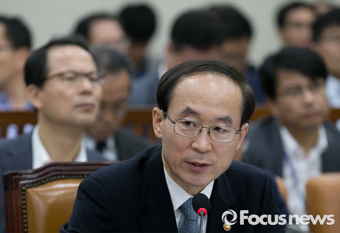 (서울=포커스뉴스) 8일 오전 서울 여의도 국회에서 열린 환경노동위원회 전체회의에 참석한 윤성규 환경부 장관이 의원들의 질의에 답하고 있다.