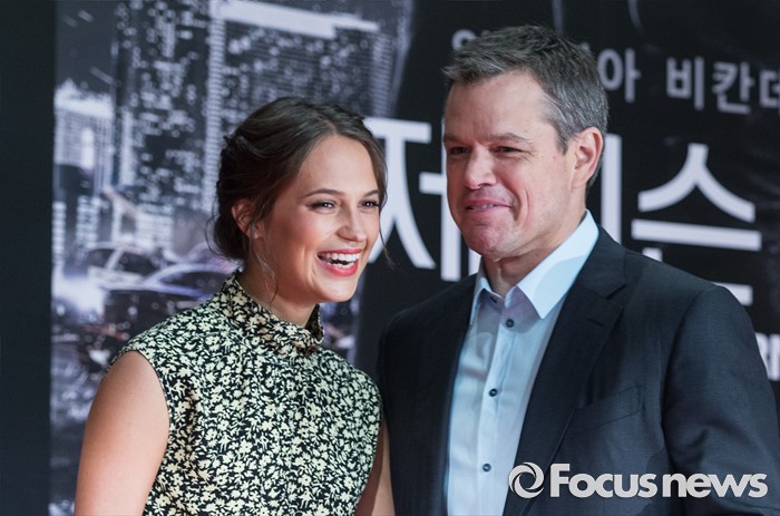 (서울=포커스뉴스) 8일 오전 서울 종로구 포시즌스호텔 서울에서 열린 영화 '제이슨 본' 아시아 프리미어 기자간담회에 참석한 배우 알리시아 비칸데르(왼쪽)과 맷 데이먼이 포토타임을 갖고 있다.