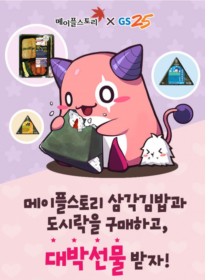 (서울=포커스뉴스) 넥슨(대표 박지원)은 편의점 GS25와 제휴를 맺고 자사에서 서비스 중인 인기 온라인게임 '메이플스토리'의 삼각김밥을 8일 출시했다.