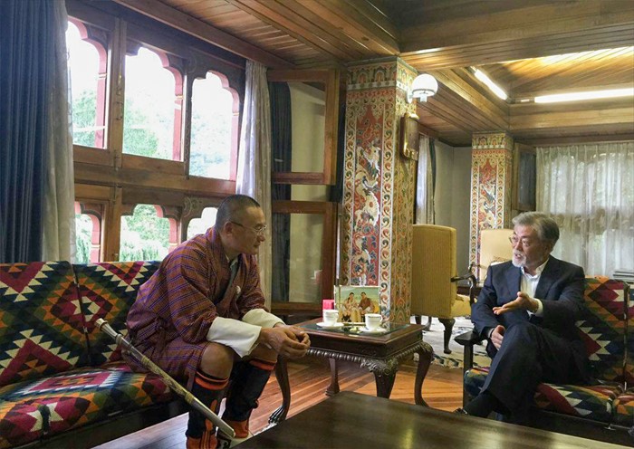 (서울=포커스뉴스) 네팔을 거쳐 부탄을 방문하고 귀국을 앞둔 문재인 더불어민주당 전 대표가 8일 부탄의 정부 수반인 체링 톱게이(Tshering Topgay) 수상과 만나 환담을 나눈 사진과 내용을 자신의 SNS에 공개했다. <사진제공=문재인 전 대표 페이스북>